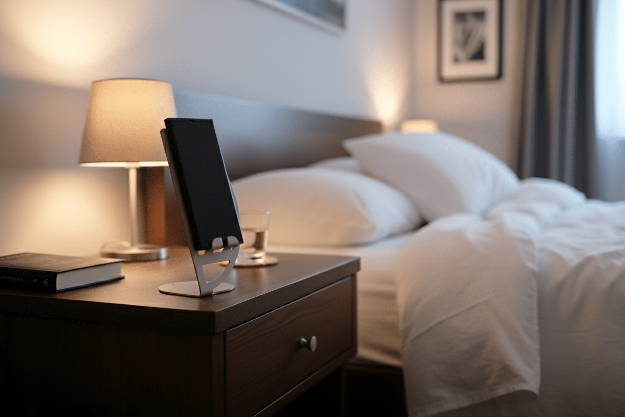The Halo stand in Grey Beige is a calm, neutral accent that brings order to your space and creates a dedicated place for your phone. Its metal construction ensures stability, while the soft, subtle lines add a sense of lightness and elegance.